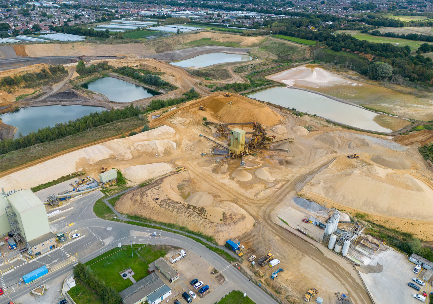 We established a permanent presence at the Quarry – site team and plant/equipment - to deliver the works. Material was extracted using 95-tonne excavators and relocated using 45-tonne dump trucks to a stockpile. From there it was loaded into a hopper and transported by a conveyor across the site (via a tunnel beneath a main road which bisects the site) where it was reloaded into a wash plant and screened to create sand a gravel (10mm and 20mm).