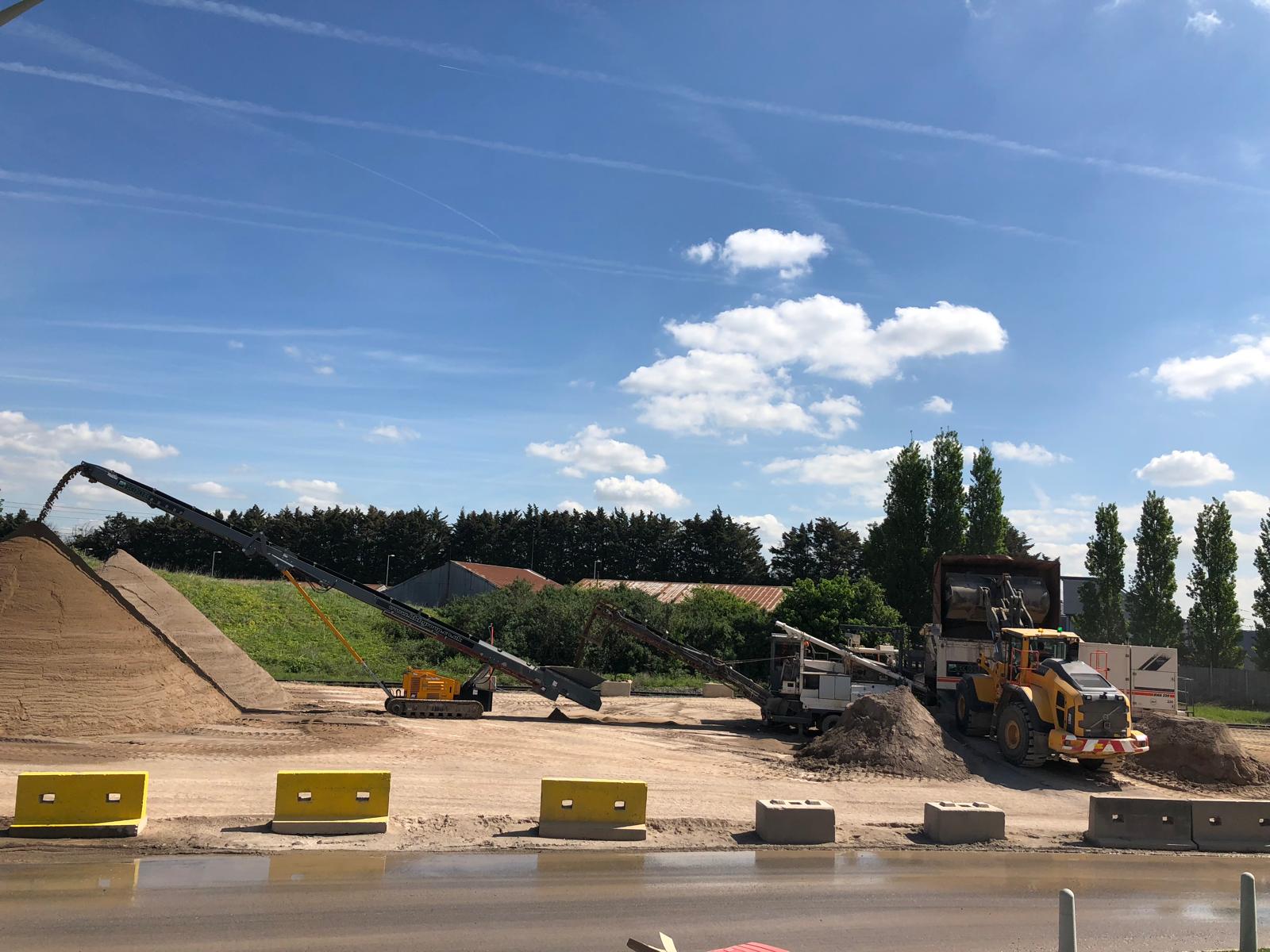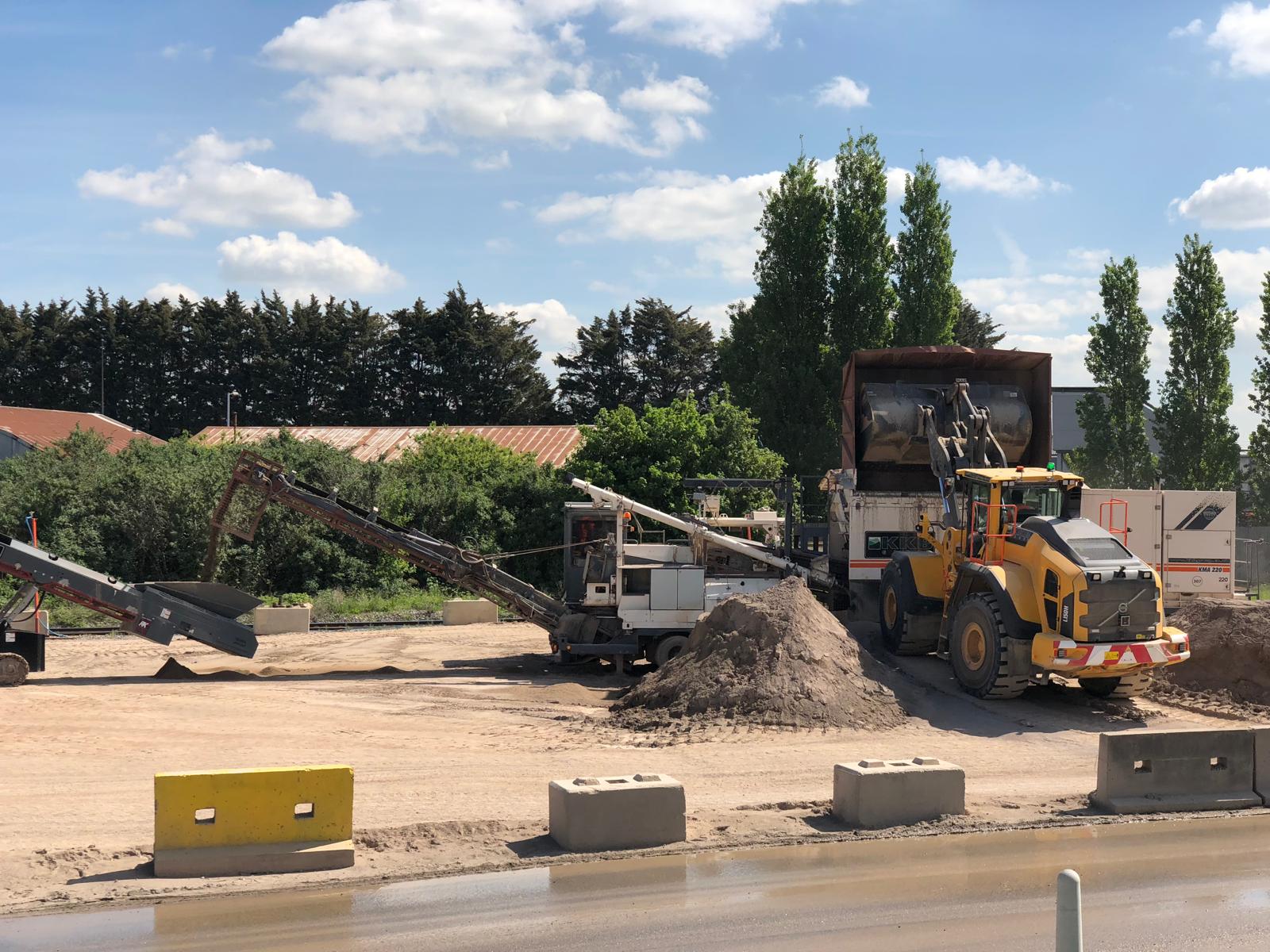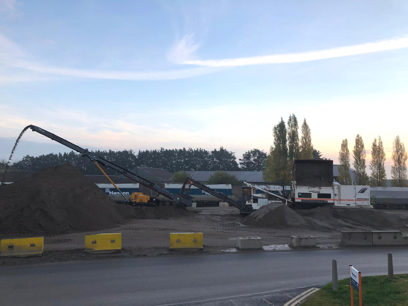 Recycled Roadways were appointed to provide material blending services for construction products supplier Heidelberg UK at their Dagenham Facility. The work involved the blending of washed marine sand with 0-4mm limestone material to make a concrete sand to specification for Thames Tideway concrete production.