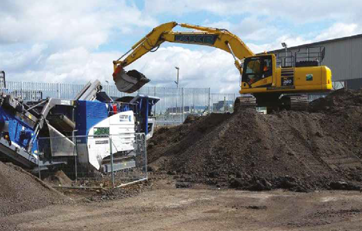We established a permanent facility which is fully integrated into the site. It consists of a 36 tonne hybrid excavator, a hybrid electric Impact Crusher with postscreen and loading shovel. Two Recycled Roadways' operatives carry out the works as part of the site team.